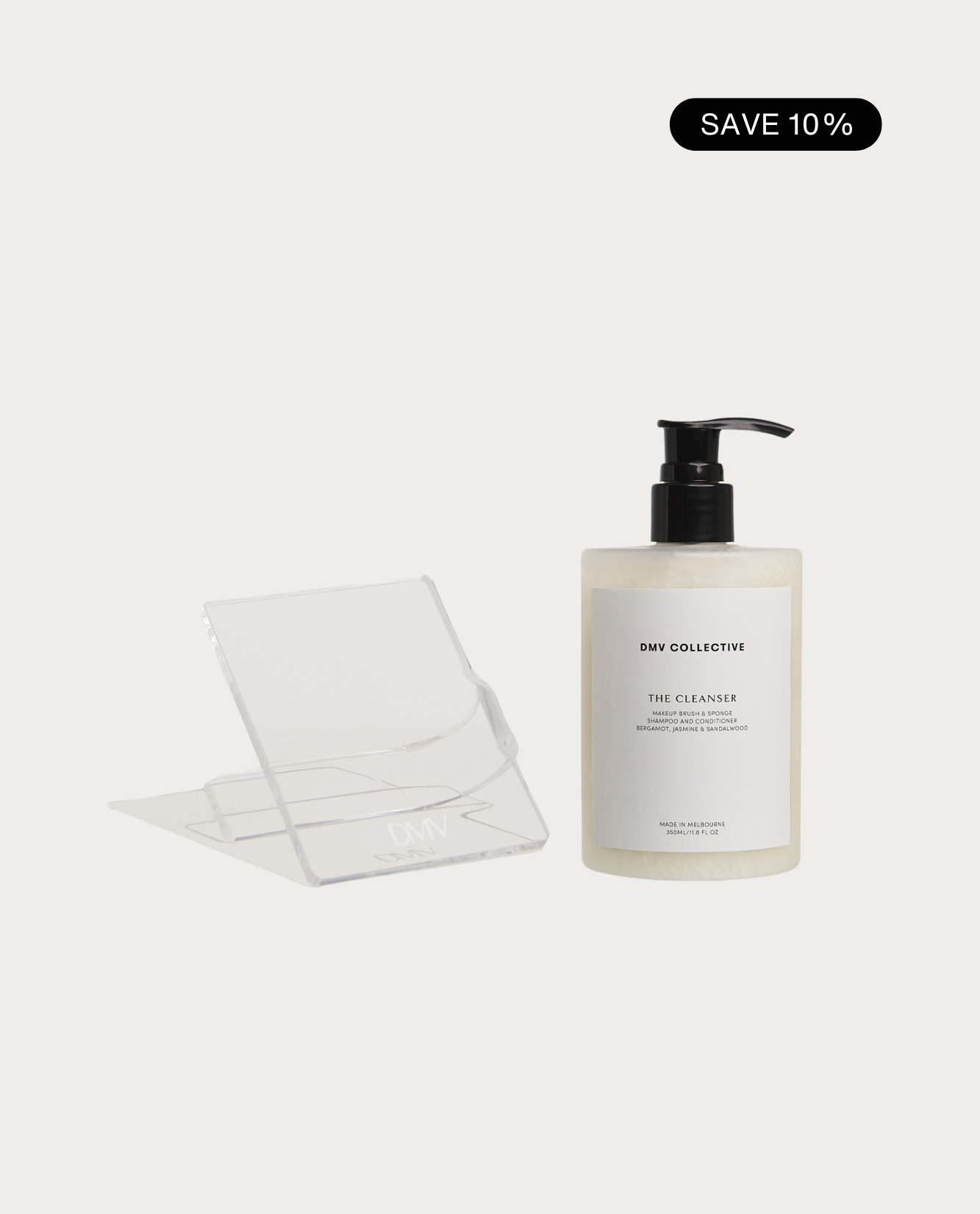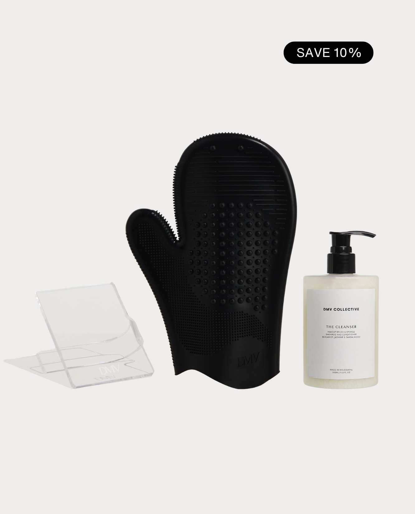 Whether you're a professional makeup artist or a beauty lover, clean tools are the foundation of flawless makeup and healthy skin. Our range of makeup brush and sponge cleaning products are designed to simplify your routine while keeping your tools in top condition. The In Between, our sanitising spray delivers a fast, effective clean with no water. Making it perfect for refreshing brushes, tools and your makeup between uses and preventing product build-up, stubborn stains and ideal for travel. The Cleanser gently cleans, conditions, and protects by helping to preserve the integrity and softness of your brushes and sponges. Both formulas support a better more flawless makeup application, clearer skin, and longer-lasting tools, making them essentials in any beauty routine. For a more thorough and streamlined clean, pair makeup brush and sponge shampoo and conditioner with our cleaning tool, The Scrub Glove - a textured silicone glove that makes washing brushes and sponges quick, easy, and mess-free (no awkward pads required).